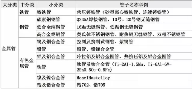 有關(guān)金屬管材分類,見下表